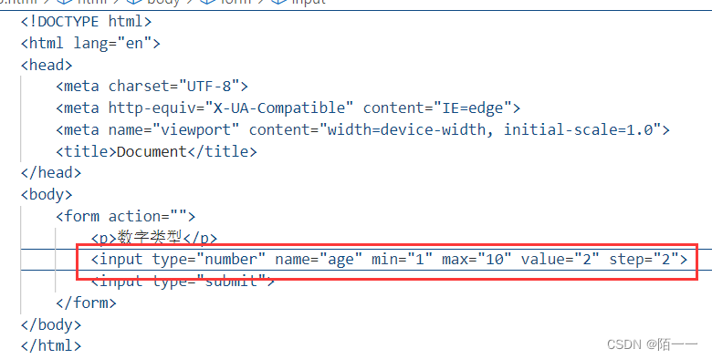 只写上面这个属性的话,结果可以输入多个数字,点击右边那个上下的箭头可以变大变小,但是它也有一些其他的属性值,代码如下: