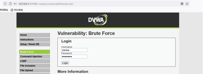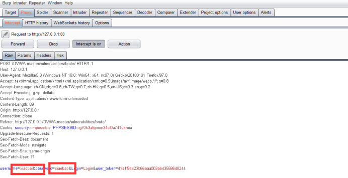 用户名和密码使用明文传输,在自己搭建的靶场中登录系统,使用账号xiaobai,密码xiaobai,设置代理