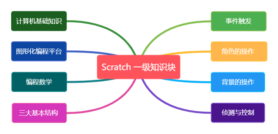 一级 | 计算机基础知识计算机历史图形化编程平台基本操作背景/角色的添加和切换角色的属性及控制声音模块触发事件侦测条件多角色设置三大基本结构 | 具备图形化编程工具的应用能力,掌握图形化编程基础,掌握三大基本结构,能够独立完成基本作品。 |