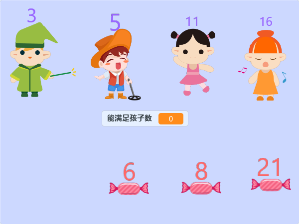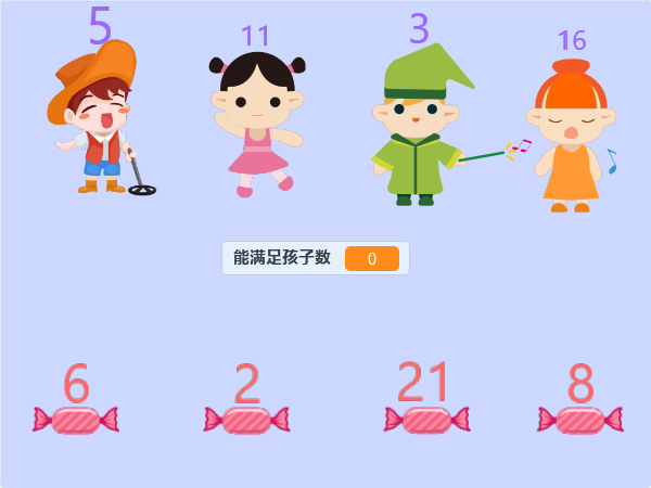 贪心算法有一道经典的分糖果的题目,我们今天就用Scratch来理解如何用贪心算法解决这个问题。