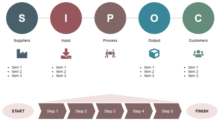 首字母縮寫詞SIPOC代表供應商,輸入,過程,輸出和客戶。使用來自這五個領域的信息,可以創建一個流程圖,對六西格碼項目進行高層概述。要創建SIPOC圖,您必須指定流程的五個主要活動,並確定潛在的供應商,輸入,輸出和客戶。