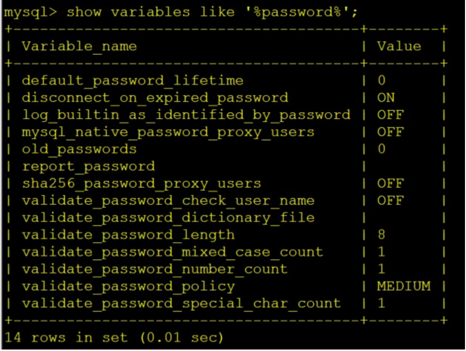 MySQL完整的初始密码规则可以通过如下命令查看: