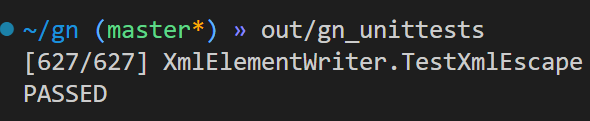 4. 运行tests:执行out/gn_unittests,运行完成出现PASSED