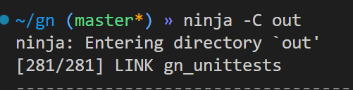 3. 执行ninja -C out将执行ninja的编译过程,用于link gn_unittests