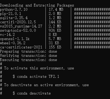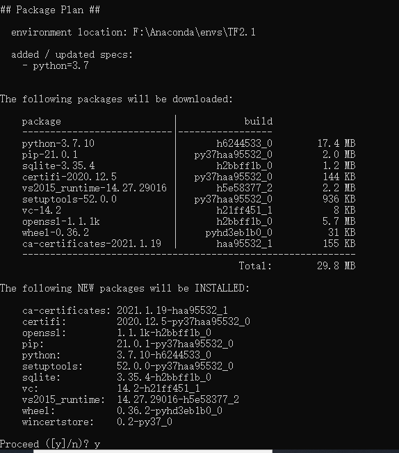 执行:conda create -n TF2.1 python=3.7