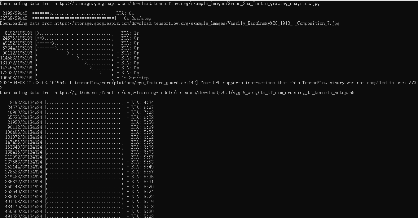 2021-04-08 21:43:05.722334: W tensorflow/core/framework/cpu_allocator_impl.cc:81] Allocation of 113246208 exceeds 10% of system memory.