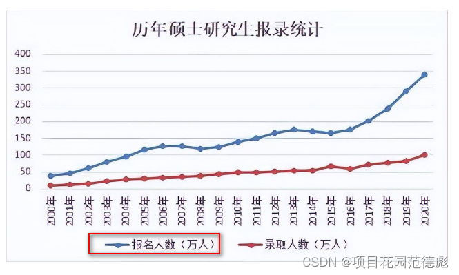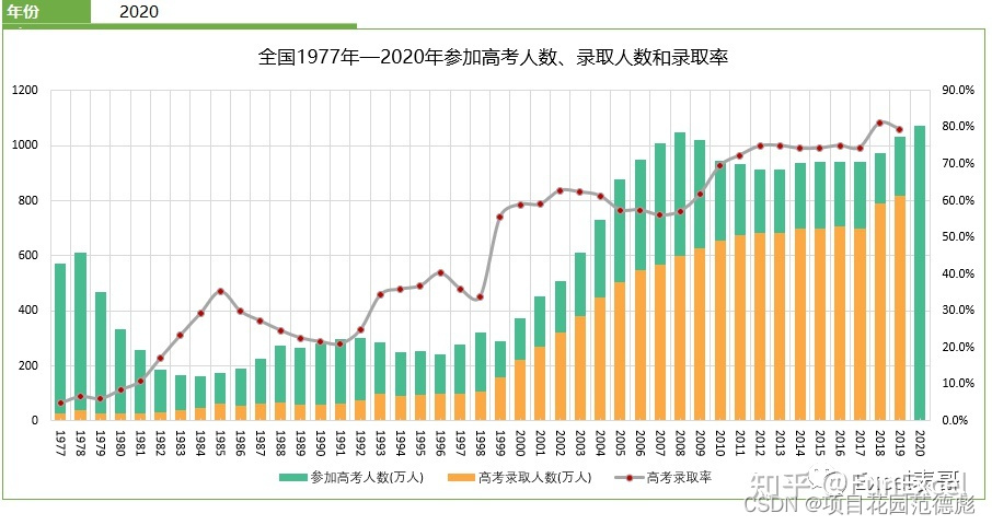 从以下两图中可以看出,2020年的研究生数量 与1998年的本科生数量相当。这就是为什么我们会感觉1999年以前的大学生那么值钱!生活的那么润。