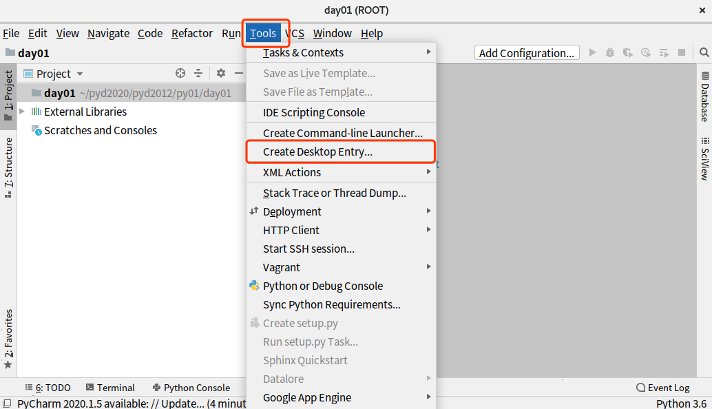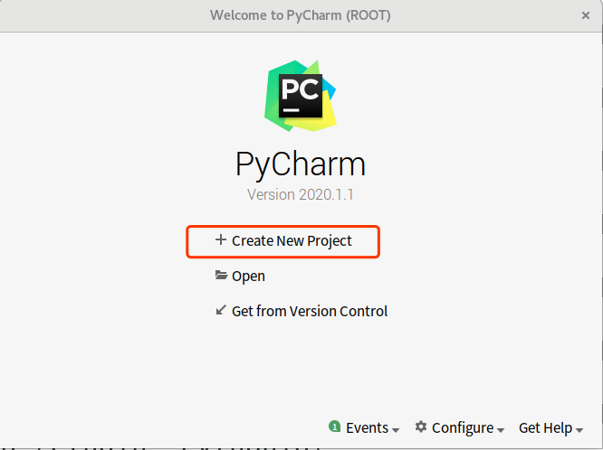 # 运行PyCharm[root@localhost ~]# /root/bin/pycharm-2020.1.1/bin/pycharm.sh