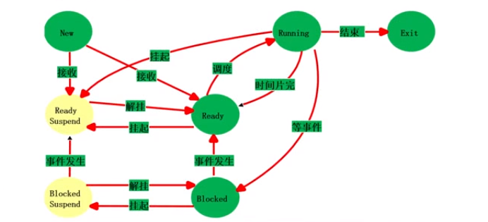 OT)进程挂起:暂停进程的执行,此时进程不占内存空间,其映射在硬盘上。进程挂起,分为阻塞挂起和就绪挂起。解除挂起和挂起的操作主要原理是内存和硬盘换入换出。当内存空间不够用时,操作系统就会将没在执行的进程挂起(换到硬盘中)以腾出内存空间。或者有优先级更高的进程需要被执行时,此时可能会将低优先级的进程进行挂起。如果阻塞挂起进程的资源被满足,可在磁盘上修改进程状态为就绪挂起。