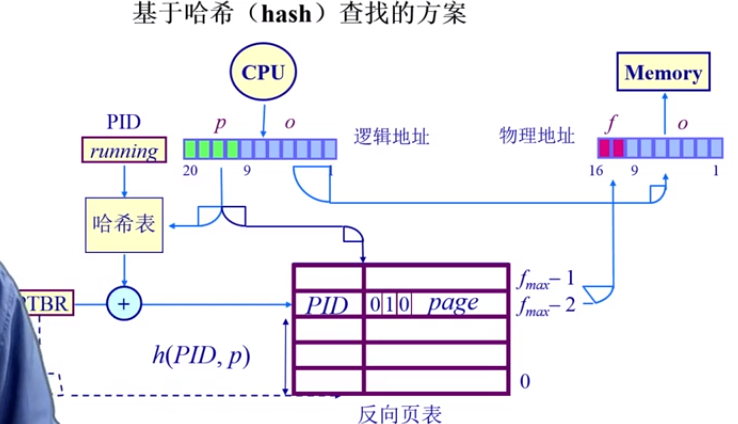 可以利用当前程序运行的进程号Pid 和CPU获取到的页表号通过一个简单的hash函数得到一个页帧号。组织结构没变、当然hash函数最好通过硬件计算(PTBR页表基址寄存器)来实现,此方法需要考虑的时键值冲突的问题。