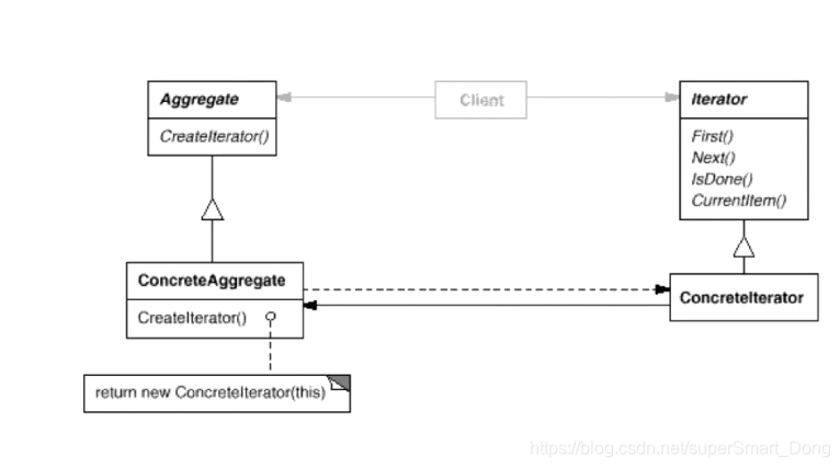 }void main(){MyCollection myCollection;....Iterator iterator = myCollection.getIterator();for(iterator.first();iterator.isDone();iterator.next()){cout<<"currentItem:"<