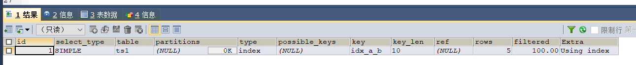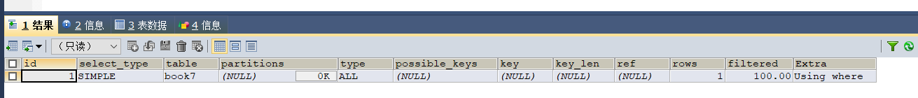 EXPLAIN语句输出结果的各个行我们在下一章讲解。这里主要关注两个字段: