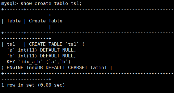 该语句执行完毕之后,使用SHOW CREATE TABLE查看表结构: