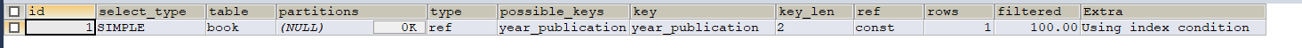 EXPLAIN SELECT * FROM book WHERE year_publication = '1990';