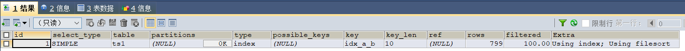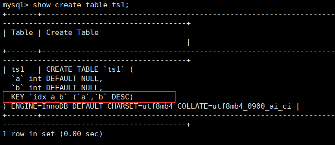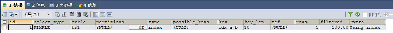 由结果可以看到,id字段上已经成功建立了一个名为single_idx_name的单列索引,索引长度为20。
