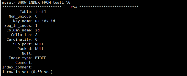 SHOW INDEX FROM test1 \G
