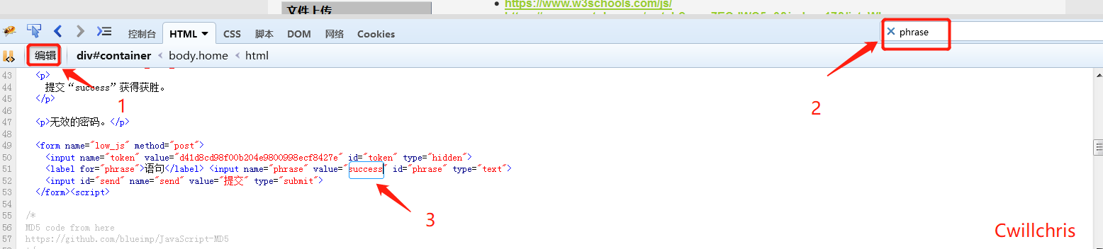 点HTML——编辑,右侧搜索框搜索phrase,然后在3处添加value的值为success