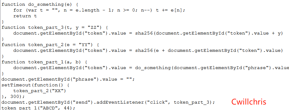function do_elsesomething(e) {document.getElementById("token").value = do_something(e + document.getElementById("phrase").value + "XX")