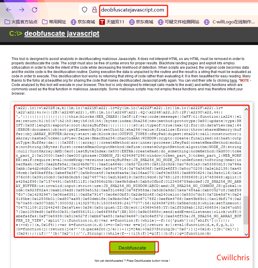 然后把乱码复制进去,点页面最下面的Deobfuscate