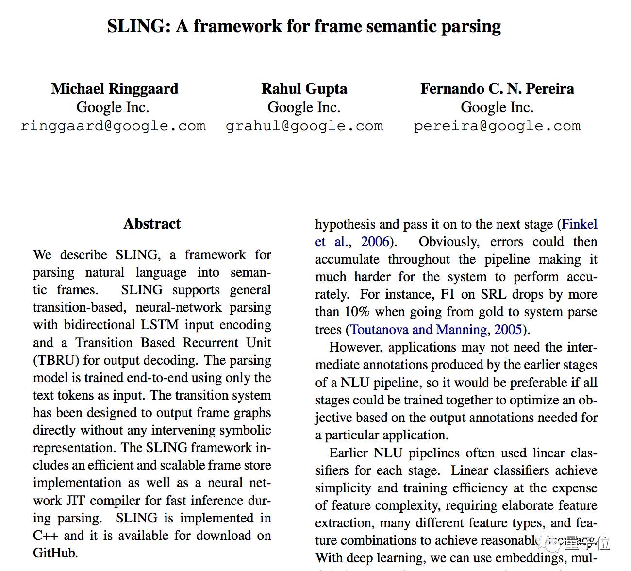 看文本知语义:谷歌推一步到位自然语言理解框架SLING | 论文+代码