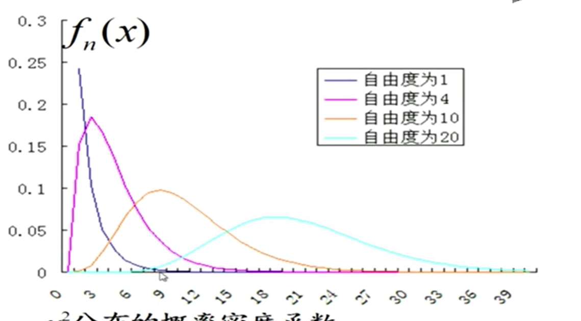 2.3 卡方概率密度函数的图形(自由度1,4,10,20)
