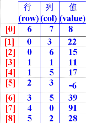 - 把具有不同值的元素的行列及值记录在一个小规模的数组中,从而缩小程序的规模