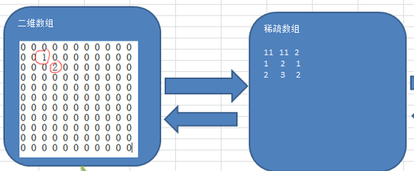 注:当一个数组中大部分元素为0,或者为同一个值的数组时,可以使用稀疏数组来保存该数组。