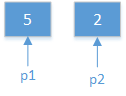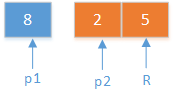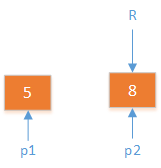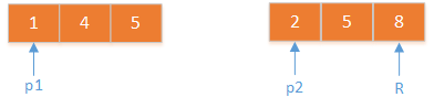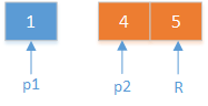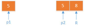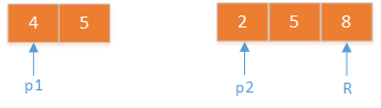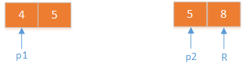5和4,合的时候,两个指针p1,p2,分别指向5和4。