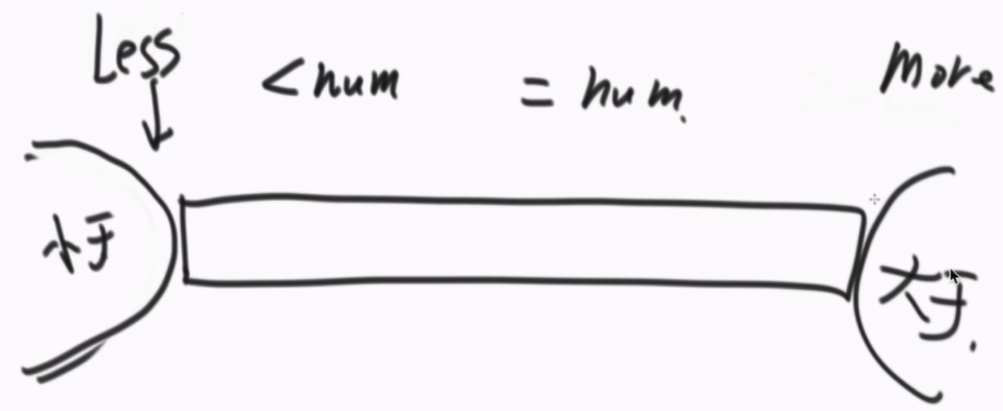 - 若等于区域不存在,则它的开始位置等于结束位置(less+1=more-1);