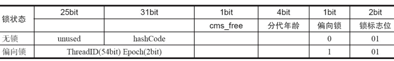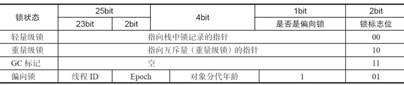 32位JVM的Mark Word的默认存储结构如下图所示: