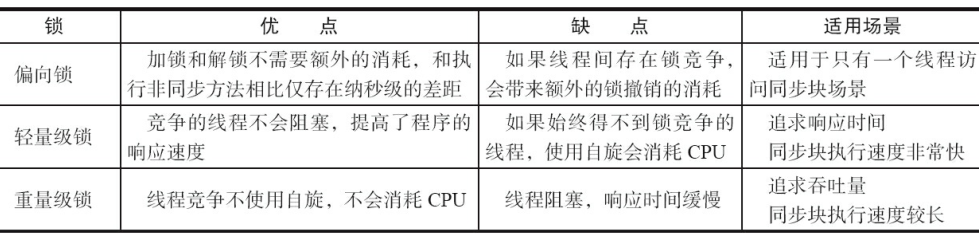 如果你确定应用程序里所有的锁通常情况下处于竞争状态,可以通过JVM参数关闭偏向锁:-XX:-UseBiasedLocking=false,那么程序默认会进入轻量级锁状态。