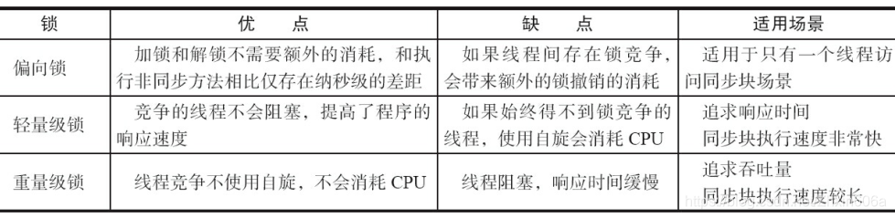 - 即当一个线程想进入同步块的时候使用循环CAS的方式来获取锁,当它退出同步块的时候使用循环CAS释放锁。