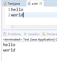 import java.io.IOException;public class Test{public static void main(String[] args) throws IOException {BufferedReader in=new BufferedReader(new FileReader("a.txt"));String line=null;while((line=in.readLine())!=null)System.out.println(line);in.close();}
