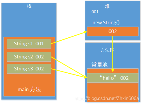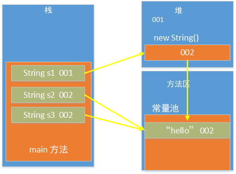字符串内容存储在方法区的常量池里面,便于字符串的重复使用。