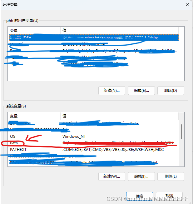 在进入的页面中找到 系统变量 下的 “Path” 点击进入
