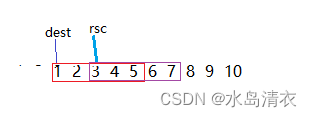 很明显我们看到,当rsc读取到第三个元素时,这里本来的元素是3,后来被改成了1,此时dest在第五个元素的5的位置,这个时候就把第三位元素放进去5->1而不是3->1,因为原来的3被改了,导致了这不是我们想要的效果,那么我们看看memmove的表现如何?