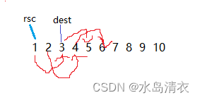 那么当dest>rsc的时候呢?我们会发现3->1 4->2 5->3 6->4这样的结果,似乎完全不受顺序影响!也就是说当dest在前面的时候,内核实现的逻辑其实是和memcpy函数的内部逻辑是一模一样的!这样我们立刻就清楚的知道了memmove的函数该如何设计了