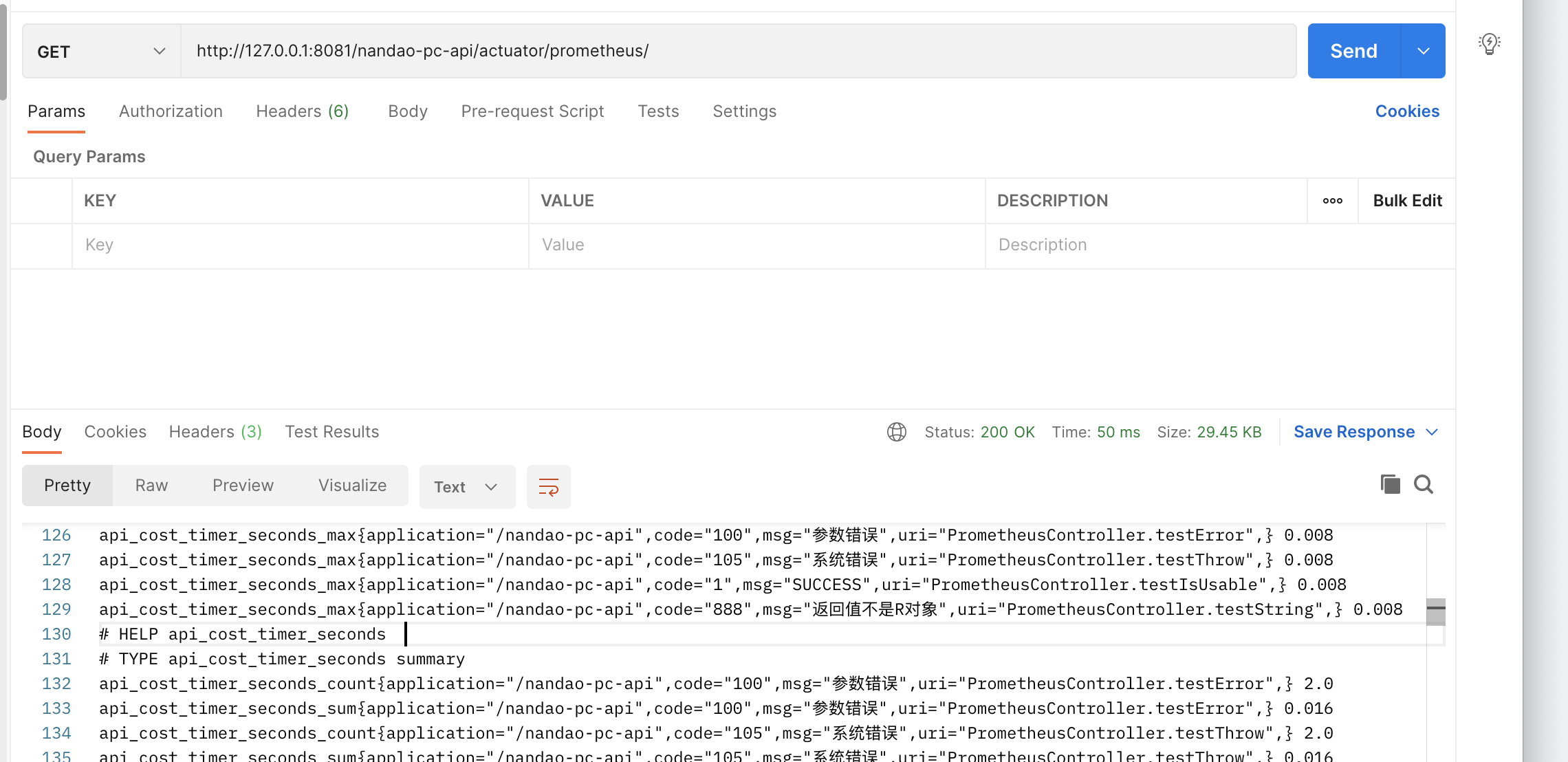 4、 最后请求 http://127.0.0.1:8081/nandao-pc-api/actuator/prometheus/