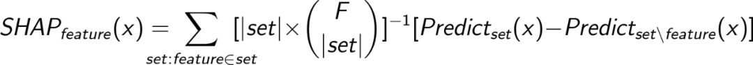 我们建立了具有3个特征的模型来计算年龄的SHAP值。推广到任何特征和任何F,我们得到了由Slundberg和Lee在文章中描述的公式: