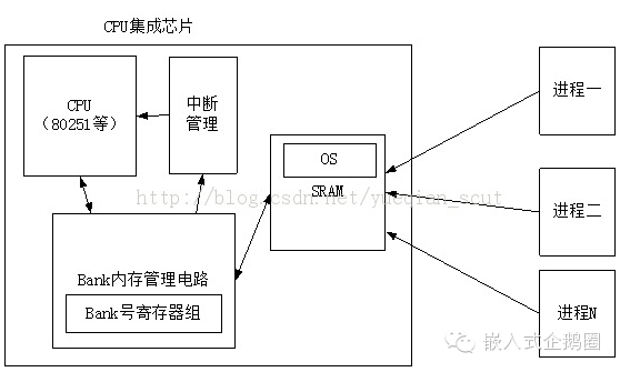 CODE BANKING机制是由Keil C针对16位8051系列单片机退出的内存管理解决方案,其目的是扩展访问内存地址空间。16位单片机的可访问空间是64K字节,假如程序和数据大于64K(系统和应用稍为复杂点就很有可能啦)怎么办?Keil C推出的解决思路是利用P1口作为地址线的扩展去访问,最大支持2M空间,即32个64K,需要5个P1口线。其译码(即P1口线的高低电平选择)是由keil C的特别编译器在编译时自动产生的。当然,也需要在代码和链接脚本中主动说明某个函数是bank代码,否则所有函数在调用之前都插入一段译码代码,那程序都不用跑了。而且其也有公共代码区,例如中断处理,操作系统常驻段等等,在每个64k中都同样有一份。