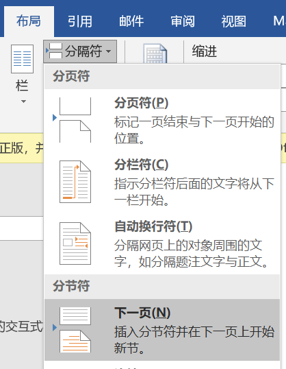 假设你想第p页有不同的页眉,则在p-1页插入分节符,然后选中第p页的页眉,将链接到前一页取消(加深时是选中,正常是不选中),则现在可随便修改页眉