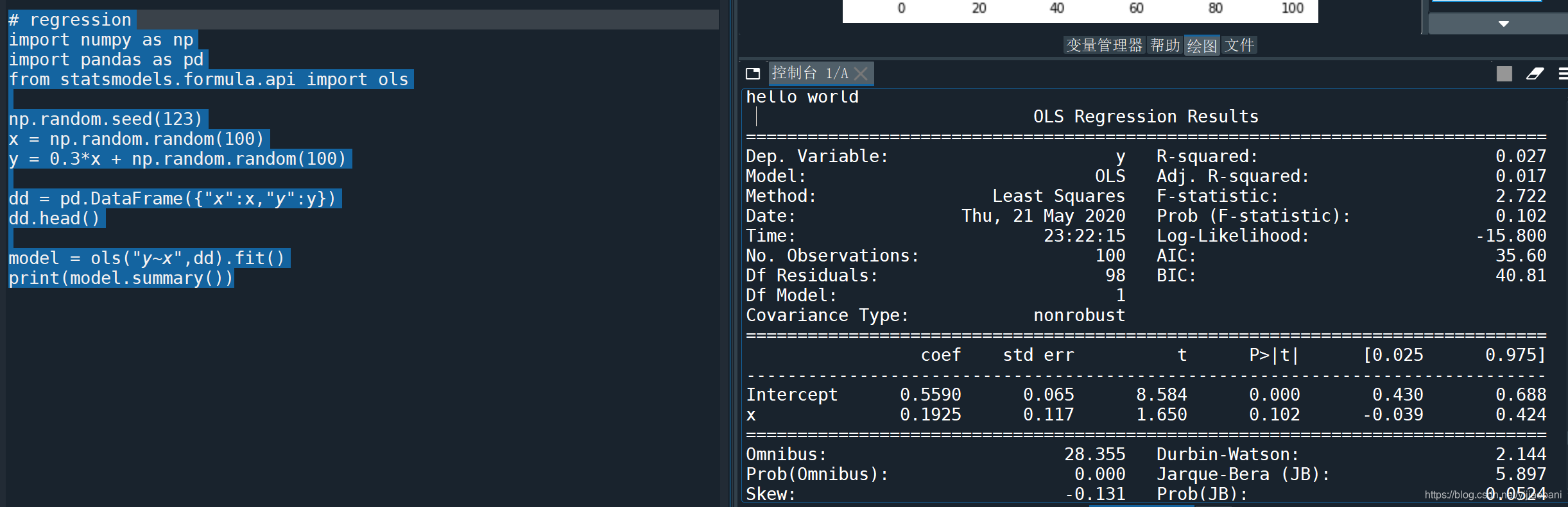 这里,有一个感想,Spyder里面的代码补全功能很强大,不用考虑一行一行的执行,代码要成块的写。类似谷歌浏览器刚开始搜索直接在输入网址的地方书写,非常不习惯,想要找到类似浏览器搜索窗口的功能,一直没有找到。导致我用火狐很久,因为火狐有相关设置。工作后,用了这么长时间谷歌浏览器,为它的简洁和设计折服,浏览器就该这么使用!因为网址框的搜索设计非常友好,可以输入网址,可以键入关键词,自动匹配之前的记录。现在想起来,之前一心想找带搜索框的功能,是因为自己的思维没有打开,没有想到那一层,以前可能真的是执念太深……。用R语言的习惯去套用python,用Rstudio的思路去套用Spyder,都会有这种问题,学习一个东西,就用最地道的方式学习吧!