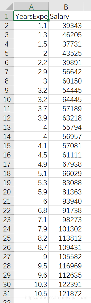 这是一个工作经验年份和薪资待遇的数据,一般来说,年份越多,薪资越高。