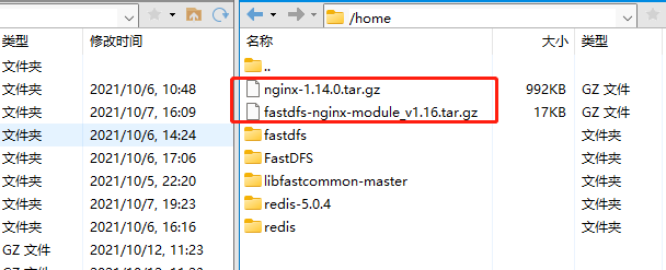 1. 上传 fastdfs-nginx-module_v1.16.tar.gz 和nginx到 /home目录下