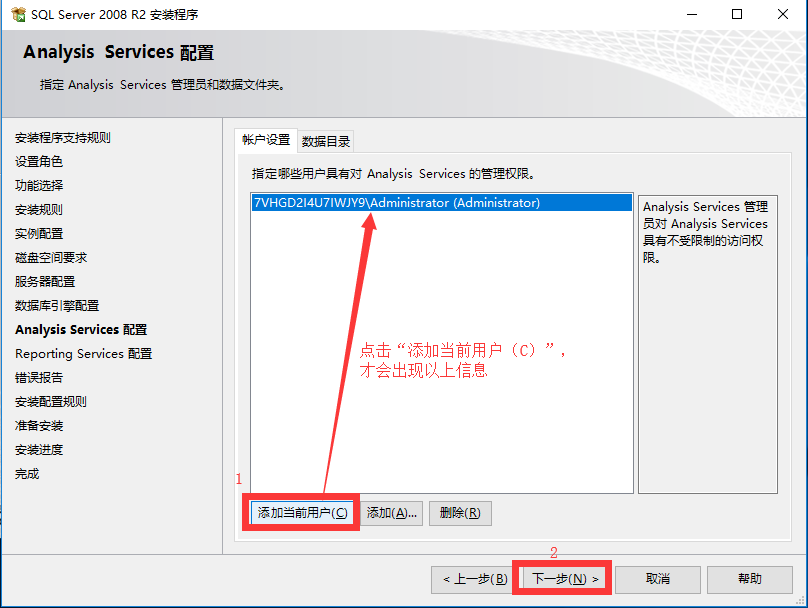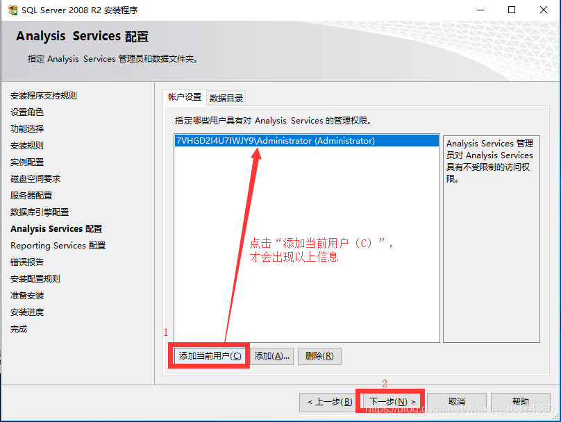17.点击“添加当前用户(C)”,然后点击“下一步”