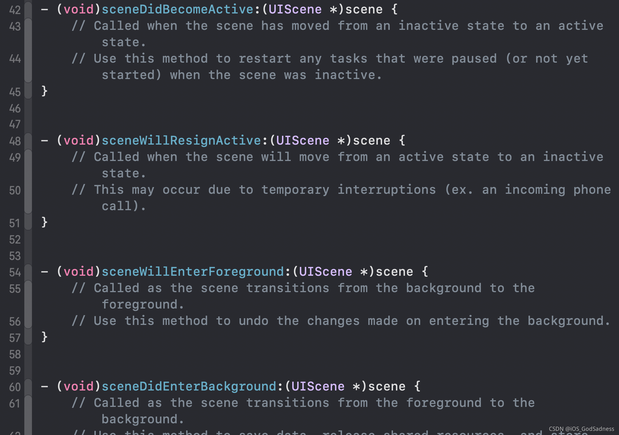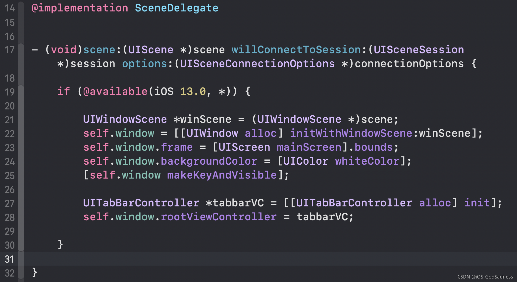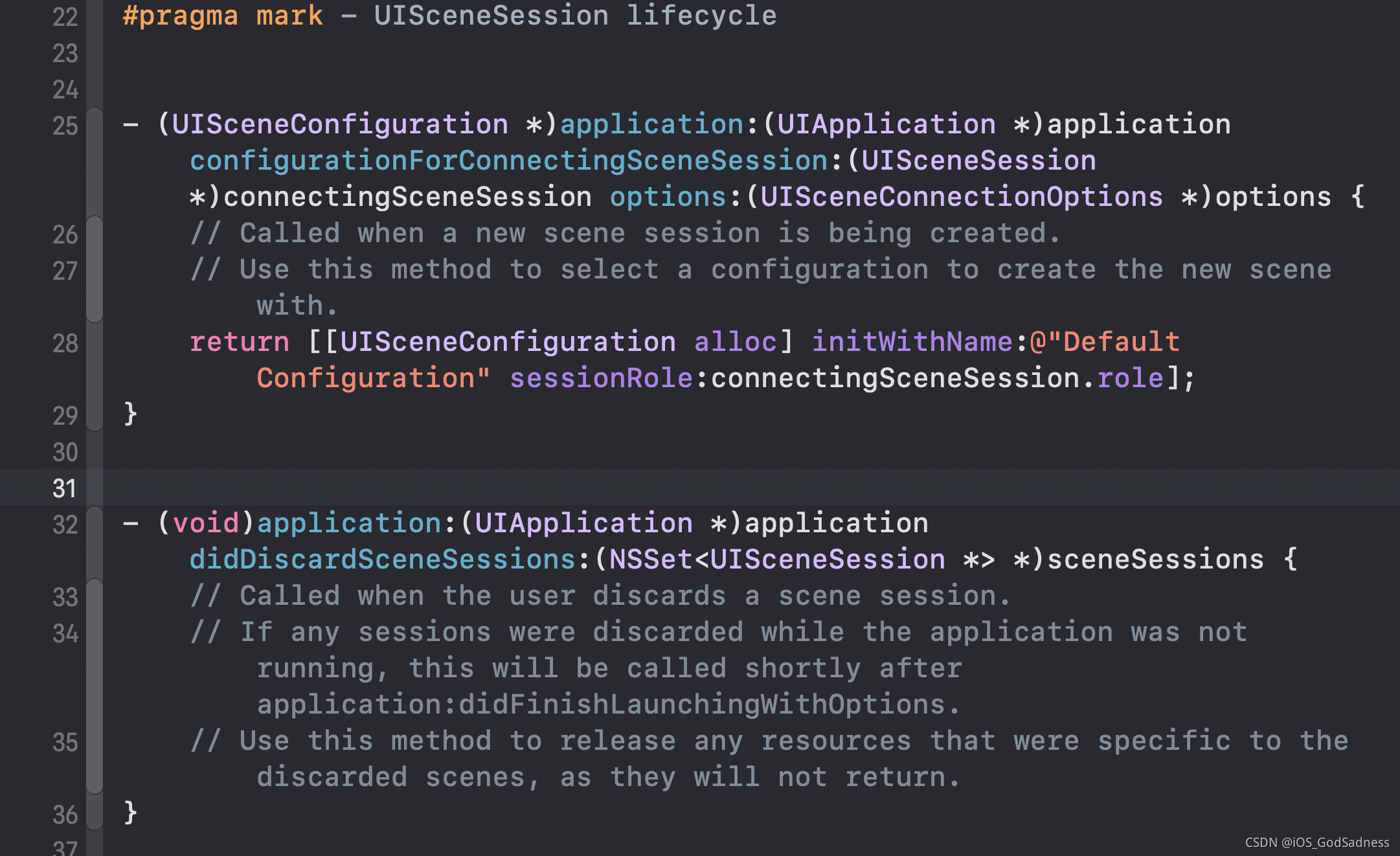 Xcode 11后新建项目时,工程中除了 AppDelegate 外还会出现一个 SceneDelegate,这是为了实现iPadOS支持多窗口的结果。AppDelegate里面的window属性被移到了SceneDelegate里面,AppDelegate多了两个关于SceneDelegate的代理方法,SceneDelegate中也有相应的代理方法。