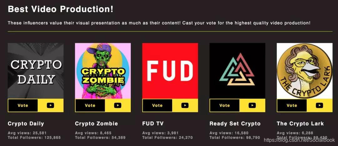 “最佳频道表现!”奖项属于Crypto Bloods,平均每个视频的视频为1.4k。