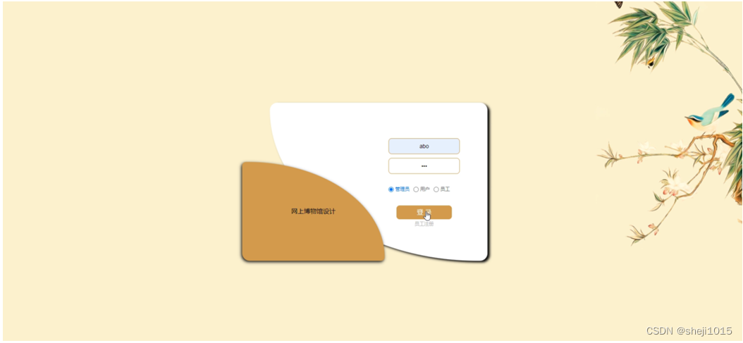 后台由管理员,用户,员工三个角色组成,主要功能包括主页,个人中心,用户管理,员工管理,文物分类管理,文物信息管理,博物馆管理,购票订单管理,退票订单管理,留言区,系统管理等;