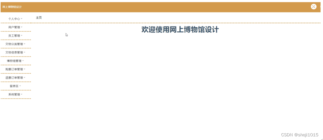 管理员登录系统后,可以对主页,个人中心,用户管理,员工管理,文物分类管理,文物信息管理,博物馆管理,购票订单管理,退票订单管理,留言区,系统管理等功能进行相应的操作管理,如图5-7所示。
