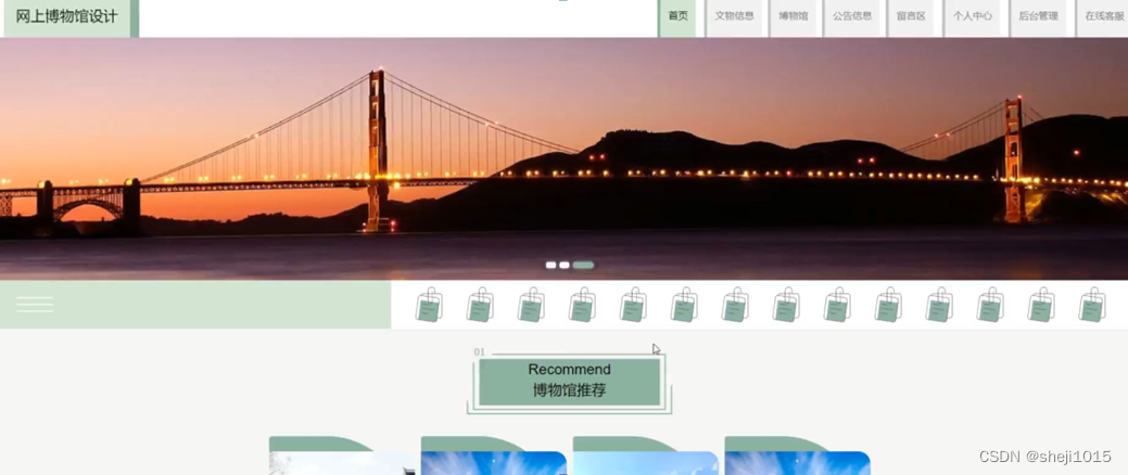 网上博物馆系统,在系统首页可以查看首页,文物信息,博物馆,公告信息,留言区,个人中心,后台管理,在线客服等内容,并进行详细操作;如图5-2所示。